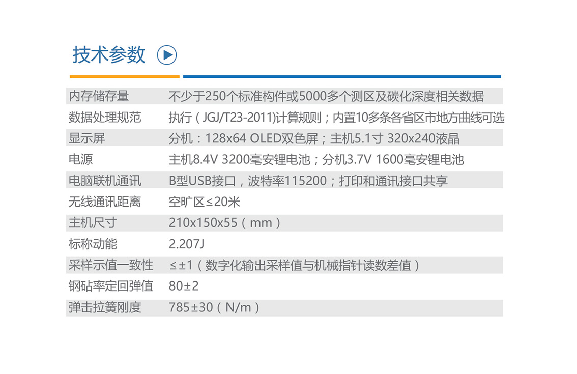 ③回弹仪机械刻度示值、分机OLED屏与主机大液晶屏幕可以实时对比观测,方便了使用和避免出现误差。