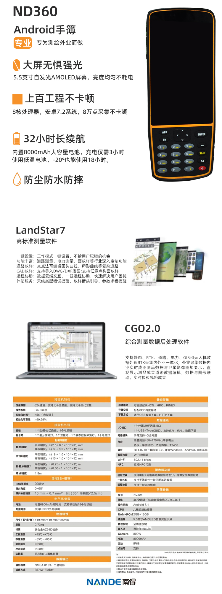 它是南得新一代的GNSS接收机,尺寸小重量轻,携带方便干活不累人;集成惯导模块,实现免对中测量,提升用户20%+作业效率;南得数据链双收通讯技术,超级双收,不需要设置,支持电台网络同时差分,一键启动;手簿自带3年免费测绘流量,让用户网络模式使用的更加舒心。
